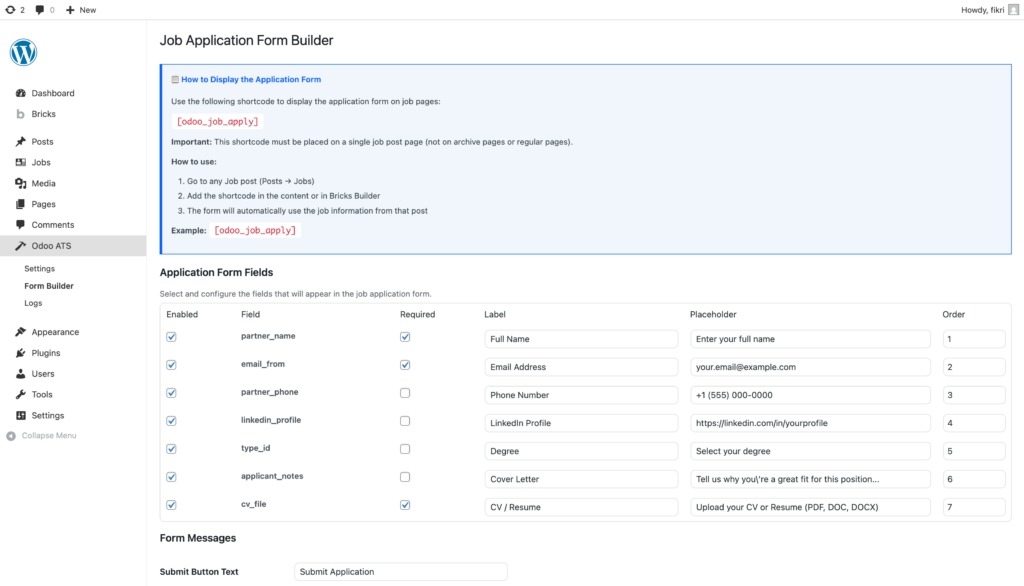 This creates a seamless loop: HR works entirely in Odoo, candidates interact entirely with WordPress, and the integration keeps everything synchronized without manual intervention.
