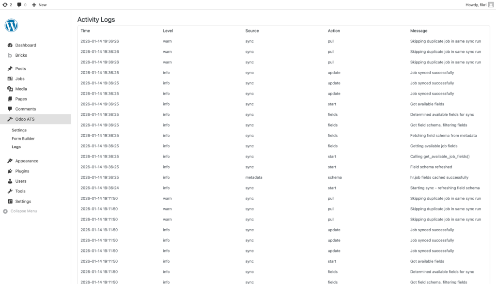 The plugin doesn’t just mirror data—it actively reconciles both systems. If a WordPress job post exists without a corresponding Odoo record, it gets removed automatically. This ensures Odoo remains the single source of truth.