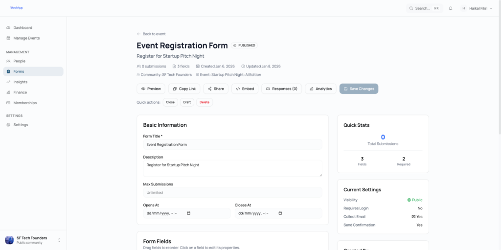 For instance, before we built the event registration feature, I mapped out the logic in Visual Paradigm online: What if the user isn’t logged in? What if the event requires a form? What if it’s a paid event but the organizer hasn’t set up payments yet? Each branch led somewhere different, and the diagram made those paths visible before any code existed.